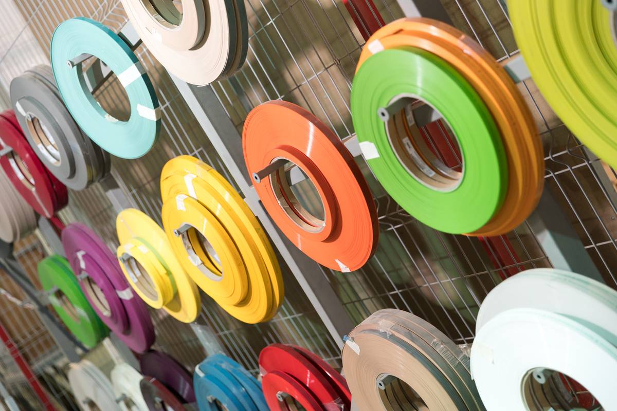 В лазерный станок (Германия) загружается кромка сразу 5 цветов